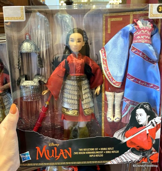 There’s also a Mulan doll set for $49.99. The “Two Reflections” are represented here by the soldier’s uniform and her garb as a caring daughter.