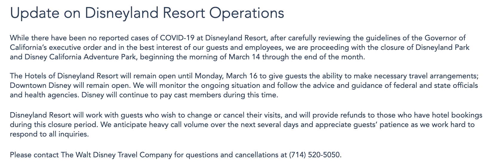 The following update has also been posted on Disneyland’s site and social pages. The parks will close beginning on March 14th. The hotels are set to close beginning March 16th. At this time, Downtown Disney will remain open.