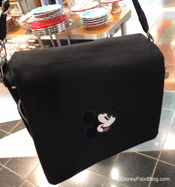 If you haven’t seen a pin trading bag that’s big enough for your collection, we might have found just what you’re looking for! Check out this Black Messenger Pin Trading Bag with Mickey on the front. For $49.99, this thing is HUGE!
