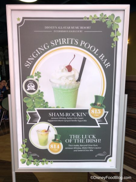 We found some fun new festive drinks at Singing Spirits Pool Bar! The Sham-Rockin’ is made with Jameson Whiskey, Bailey’s Irish Cream, Peppermint Monin Syrup, and Vanilla Yogurt Mix and costs $13. Or, for $14, you can try The Luck of the Irish, which has Tito’s Vodka, Bacardi Silver Rum, Jameson Whiskey, Midori Melon Liqueur, and Sweet & Sour Mix. Sounds delicious!