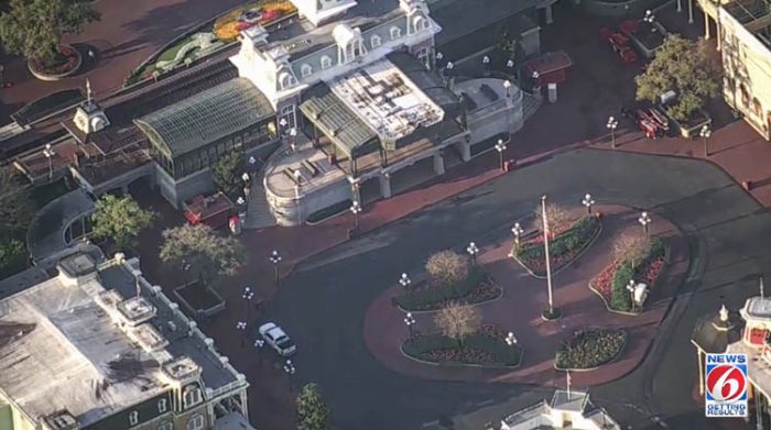 And guests just arriving at Magic Kingdom’s gates primarily by bus, ferryboat, and monorail, would normally be streaming into Main Street, U.S.A., but such will not be the case today — or for the next two weeks.
