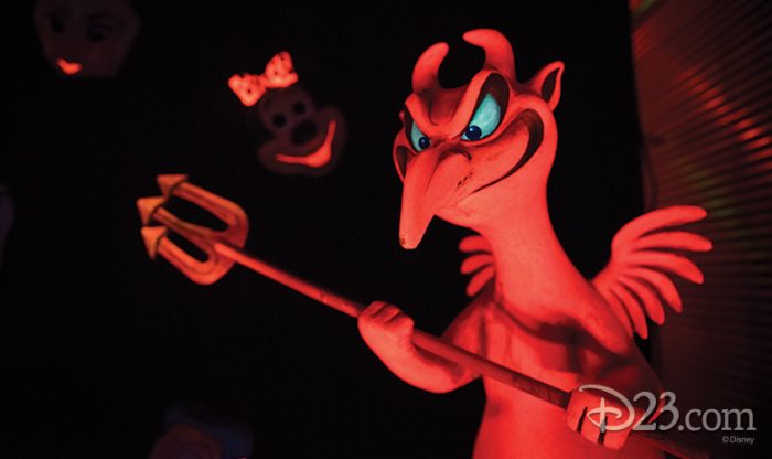 While you travel through a bar scene and end up getting hit by a train, the most ICONIC scene from Mr. Toad’s Wild Ride is at the end of the ride when you travel to the underworld. Yeah, we aren’t kidding, you guys!! Since Mr. Toad lives his life recklessly throughout the attraction, his final judgment comes in a room filled with demons, red lights, a high temperature, and even a visit from the devil himself.
