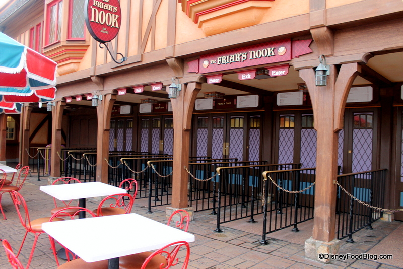 Since we said goodbye to the McDonald’s fries in the parks, Fairfax Fries became Toluca Legs Turkey Company (now Sunshine Day Cafe and Bar), Perifries became Trilo-Bites, Frontierland Fries got a makeover to become Golden Oak Outpost, and Village Fry Shoppe became the Friar’s Nook.