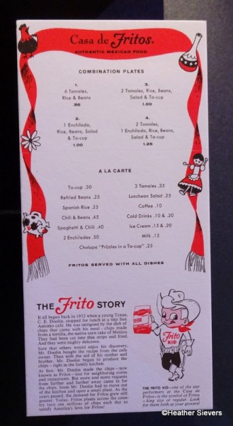 Disneyland used to be home to a counter service location known as Casa de Fritos. Not surprisingly, this spot was famous for shelling out Frito Corn Chips! This restaurant played host to the infamous “Frito Kid.” Frito Kid was a mascot-turned-chip-dispenser complete with rolling eyes, working tongue, and rotating head.