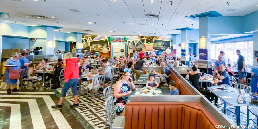 The decor and seating of Hollywood and Vine is reminiscent of an old diner — the kind the stars of Hollywood would visit late at night after a long movie shoot or big premiere. You’ll find a variety of booths and tables — all designed to get in and out of easily as you’ll be rubbing elbows with big stars and visiting the buffet.