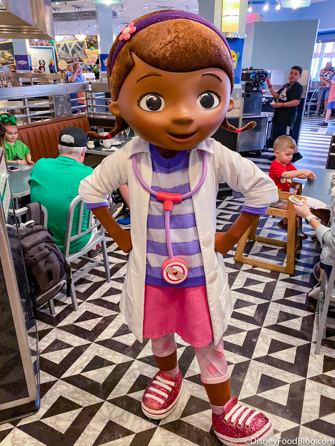 As with any character meal, no one is guaranteed, but this the group you’re most likely to see. If you’ve got little ones who love Disney Junior, this is a great gang to meet all at once! Just think of all of the outdoor character lines you’re skipping — plus you’re inside eating breakfast! 🙂