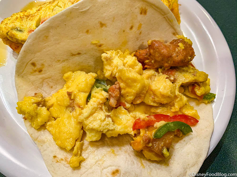 These tacos turned out to be one of our favorite eats of the day! We loved the build your own aspect, plus the subtle heat from the chorizo and peppers in the eggs. It wasn’t overwhelmingly hot, but had a lot of good flavors. If you’re looking for something slightly more adventurous on your plate, we definitely recommend making one of these!