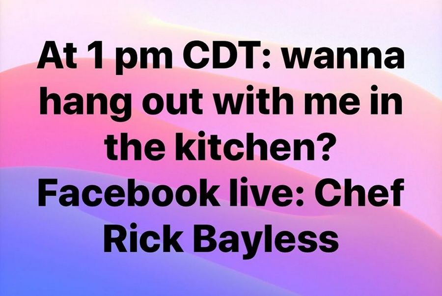At 1:00 PM Central Time today (March 25, 2020), Chef Rick Bayless will be going live on Facebook. You can click here to visit his Facebook page, and — just a few hours from now — “hang out” with the chef!