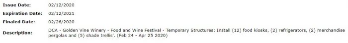 Now though, we’ve spotted a renewal to the permit that changes the dates from February 24th through SEPTEMBER 7TH. Wow! That’s quite the date change! This could mean that Disneyland is looking to extend the Food and Wine Festival in light of the recent closures. We sure hope so!