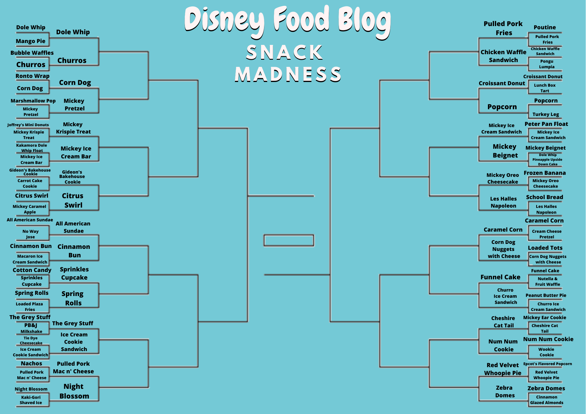 Be sure to share pics of your brackets with us once you fill them out with the hashtag #DFBSnackMadness! We want to see what you hope wins!! Every day we’ll be letting YOU choose what snacks move on in a series of polls!