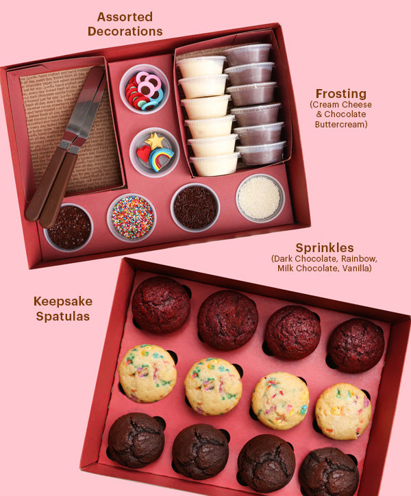 The DYO to-go cupcake kit comes with everything you might need to design your little cakes of sweetness any way you want. Inside, you’ll find an assortment of decorations, sprinkles, cream cheese and chocolate buttercream frosting, and even two spatulas that you can keep.