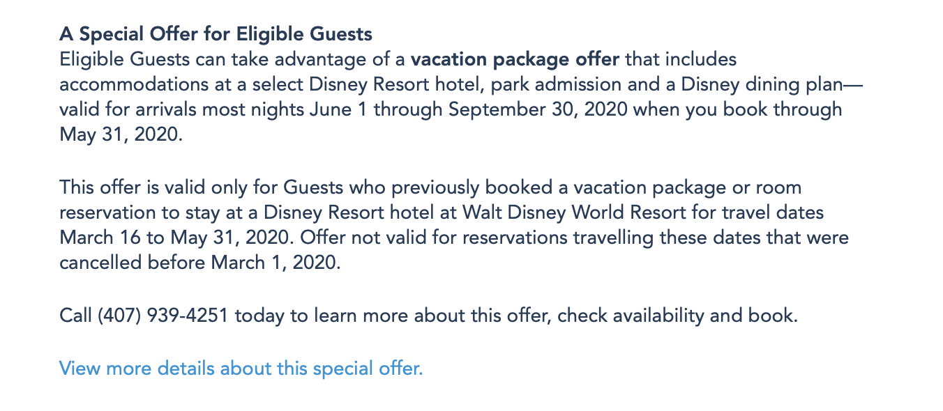 You can call (407) 939 -4251 or your travel professional to learn more! It is likely that guests who are eligible will receive communication from Disney directly; but if you’ve got a trip scheduled during those dates, you are eligible!