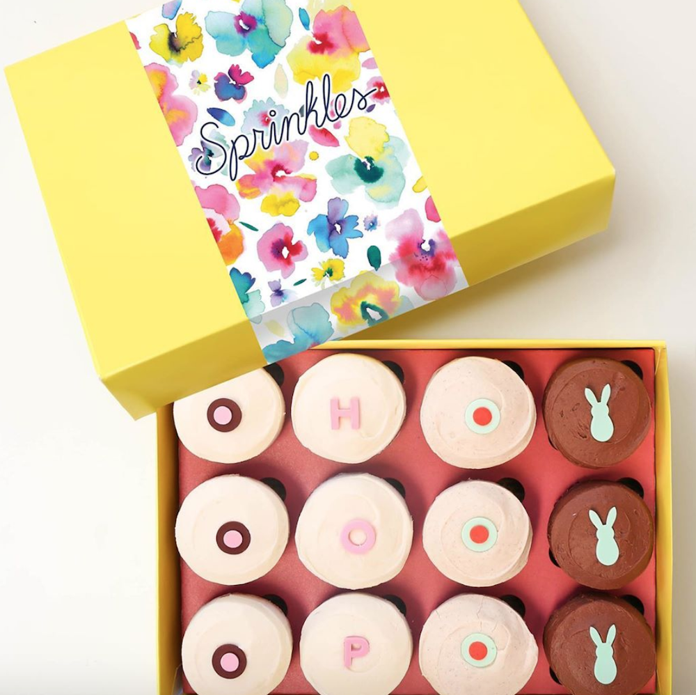 April showers bring May flowers, and the Spring Box has blossomed at Sprinkles! Each bright yellow box is wrapped in a floral pattern and comes with a dozen themed cupcakes. You can choose from the Hop Box with red velvet, vanilla, dark chocolate, and carrot cupcakes…