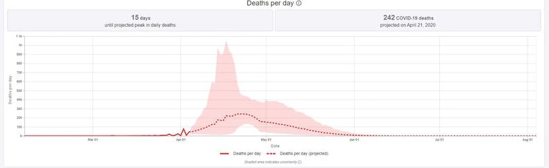 Florida’s peak is set to closely follow the projected peak for the country on April 15th. The IHME has modeled this data on observed death rates and the effectiveness and implementation of preventative measures.