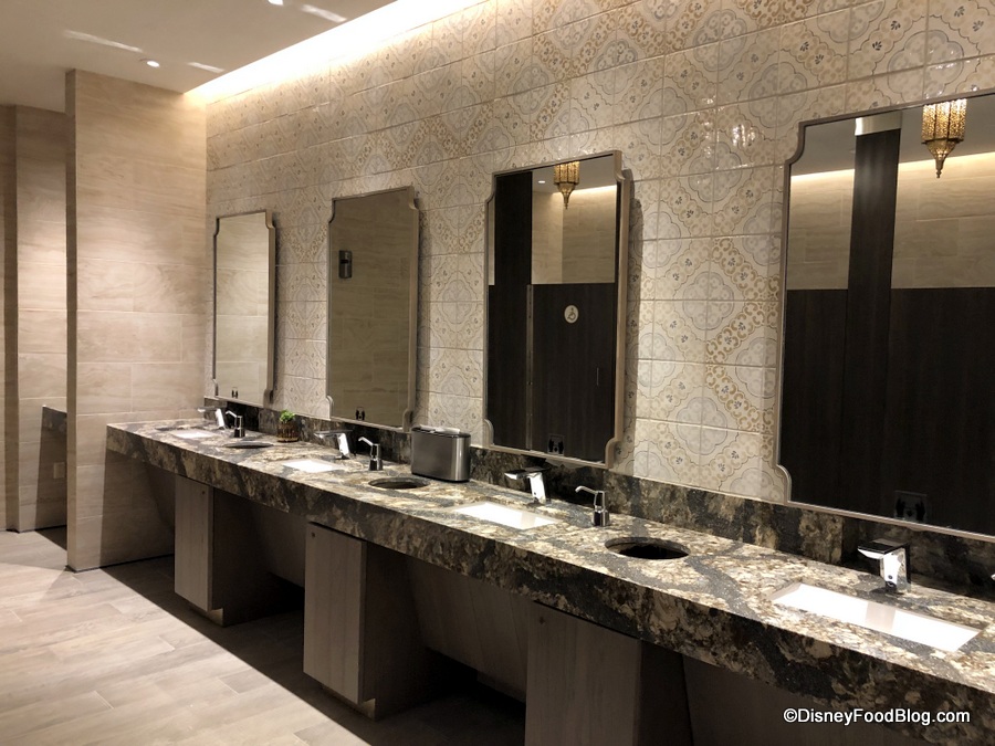 Deluxe resorts may (or may not) have hot water in the lobby restrooms.