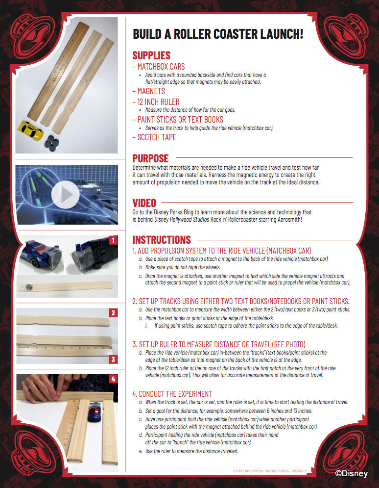 These two work behind-the-scenes at Disney, and are ready to share the math, science, and engineering skills (not to mention the magnets) that come together to launch your limo for Rock ‘n’ Roller Coaster… just in time for your next at-home science lesson served up with a side of rock and roll! You can check it out in the video below.