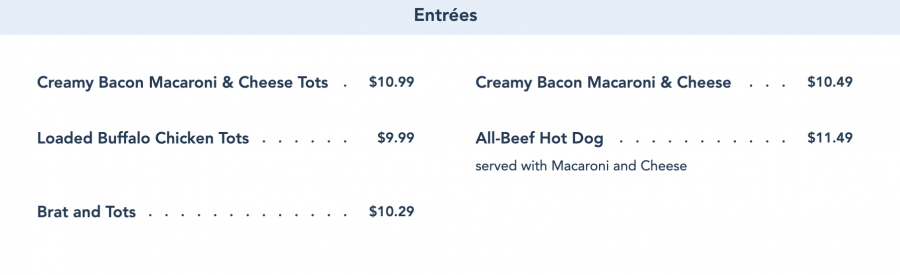 This also signaled a price increase for this menu item. Previously $9.00 for the Hot Dog with tots, it will now cost $11.49 for the Hot Dog with mac and cheese.