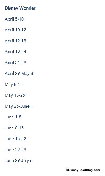 The full listings of all sailings affected so far can still be seen on the Disney Cruise Line website: