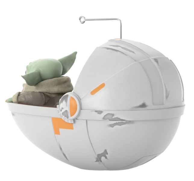 In fact, yesterday, they just released the designs for their new line of 2020 Disney Hallmark Keepsake Ornaments, and there are some real CUTIES! Of course, our eyes immediately gravitated toward this Baby Yoda Ornament for $19.99, complete with his flying space egg-mobile!