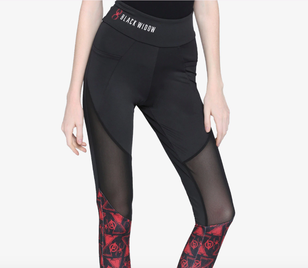 You can get ready to do some crime fightin’ martial arts, all while looking stylish in the Black Widow Logo Panel Leggings for $26.32.