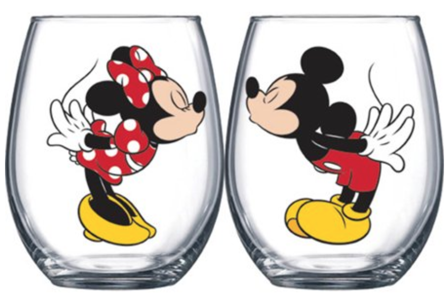 Shake up date night at home for you and your sweetheart! Curl up on the couch with your favorite person that you’ve spent ALL this time with lately and sip on these ADORABLE Mickey and Minnie kissing stemless glasses! The set is priced at $20.96.