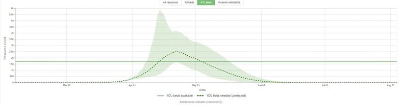 On one hand, California is expected to see a peak in the health crisis on April 15th, after which point the situation is projected to level and go into decline. Florida’s situation is expected to be slightly more prolonged (though earlier than expected!) with their peak projected to arrive on April 23rd. Though the peaks are pretty close together, the way that the respective governments respond could differ greatly.