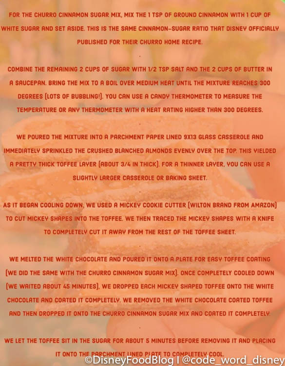 You can check out even more Disney recipes including the Grilled Cheese Sandwich from Woody’s Lunch Box as well as their famous Hazelnut Lunch Box Tart here! Now excuse us while we get busy makin’ up another batch of Churro Toffee and thanks again to our buddies @code_word_disney for the sweet deets!