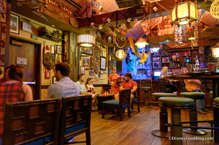 Once inside, you can sample a number of festive tiki-inspired drinks. But heads up — some of the drinks can trigger surprises in the bar. What sort of surprises? You’ll have to go to see! Oh, and if you happen to get a “sinking feeling” in the bar, it may not be all in your head — keep an eye on your chair! 😉