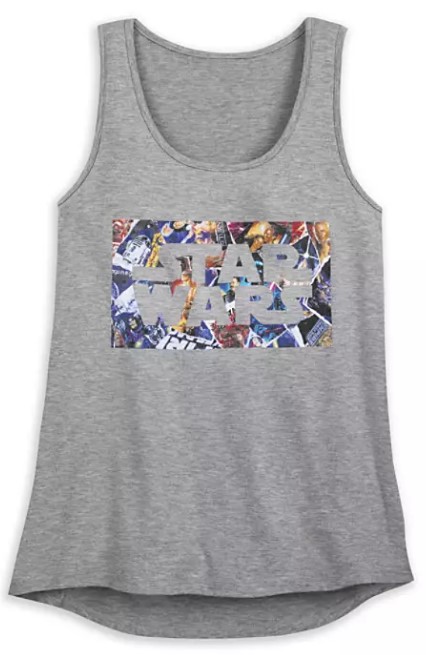 If you’re looking for a summary choice, we L-O-V-E this Star Wars: The Skywalker Saga Collage Tank Top for $34.99.