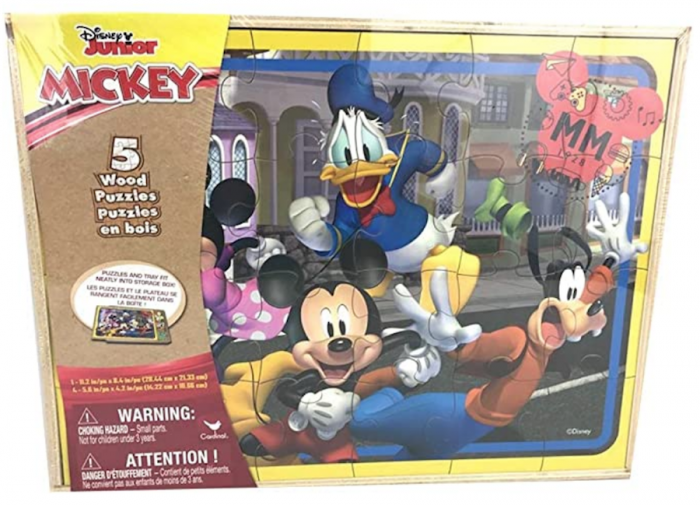 Introducing your little one to the fab-five for the first time? Or maybe they already ask for anything with “Mick Mou” on it? Well, they may just love these 5 Mickey Mouse Wood Jigsaw Puzzles and you may love that they come in a wooden storage box! Fun and organized? Sounds pretty great to us! The set of five puzzles is $22.99!