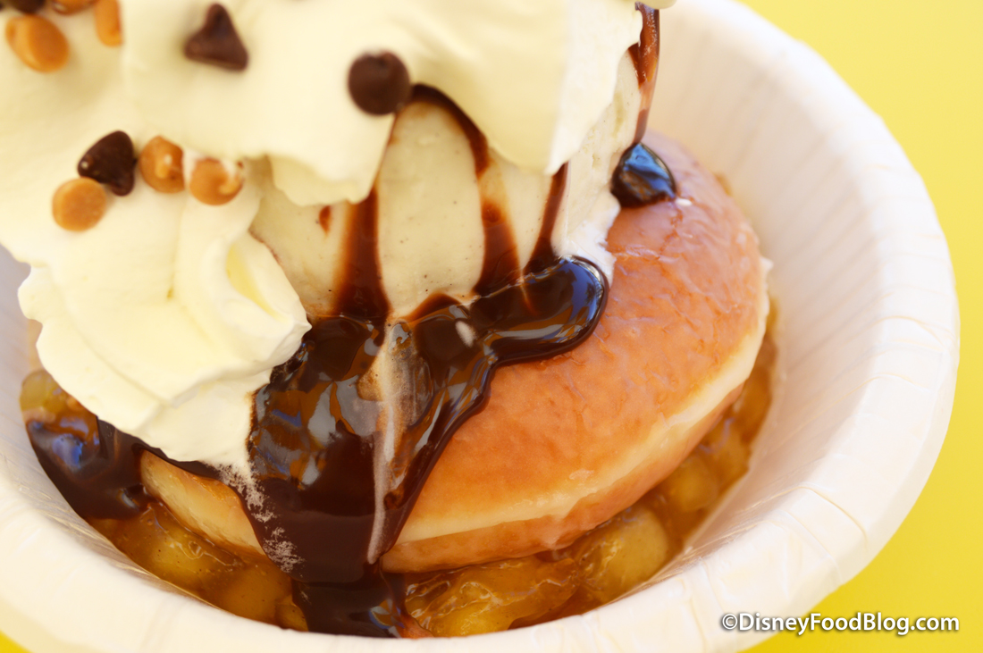 Over in Magic Kingdom, there’s a pretty to-die-for sundae you can sometimes find at Plaza Ice Cream Parlor. It’s the Donut Sundae (!!!). Yeah, you heard us! And yes, you can make this delish treat in your very own home.