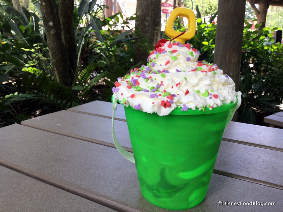 Typhoon Lagoon’s very own shareable sundae is up next! It’s time to learn how to make the Sand Pail from Happy Landings Ice Cream. This is another one that you’re going to want to get the whole fam involved to tackle, especially if you want to fill up a real sand pail with ice-creamy goodness!