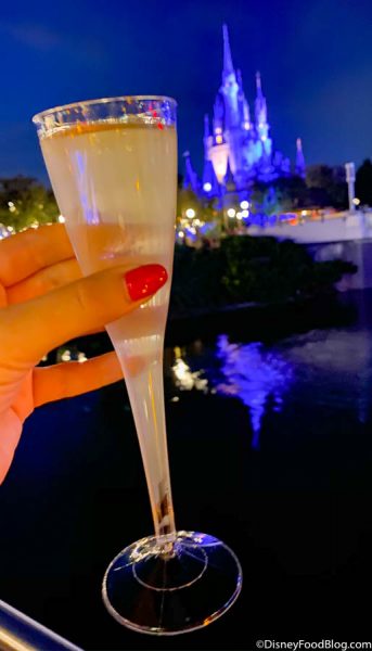 It’s worth noting here that we’ve had conflicting reports on if alcohol is served with the Plaza Garden Viewing option. Some guests have reported to us there was no alcohol, but when we spoke to a Cast Member, we were told alcohol WAS included with this party. We suggest if you’re looking at that particular party to call and verify BEFORE you book.
