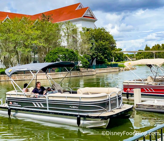 Walt Disney World Marinas offer motorized boat rentals for $45 per half hour. You can rent a Pontoon boat that seats up to 10 guests.