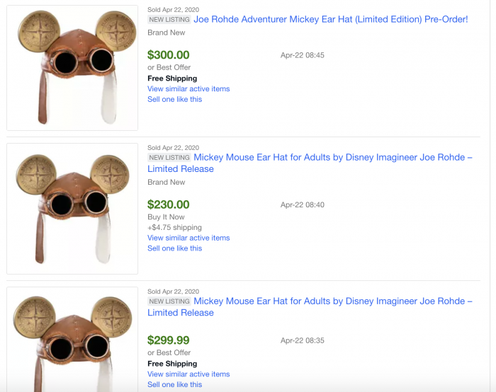 We’ve already seen $400 eBay listings for the Joe Rohde Mickey Ears which retail for $78, but it looks like so far, the most anyone is willing to pay is $300 with free shipping! Still, that’s QUITE the markup!