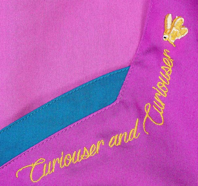 Man, we could really go for a Cheshire Cat Tail from Magic Kingdom right now! But look — it gets EVEN better! The dress is also embroidered with the phrase “Curiouser and Curiouser” and decorated with little bread and butterflies! We think even Alice herself would trade in her signature blue dress and white apron to rock this fanciful frock!