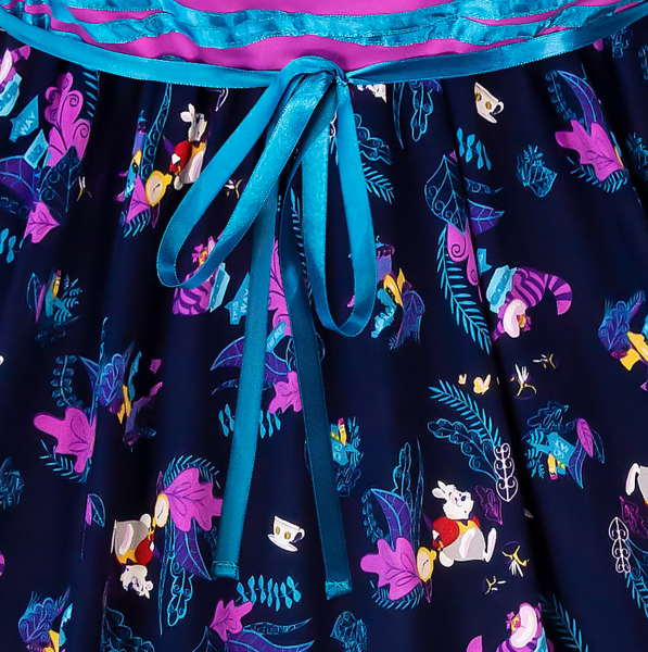 And the little ribbon accent around its waist is really adorable, too! Make sure you check out the skirt’s fabulous print as well! It’s covered with designs of the White Rabbit, Cheshire Cat, and other details from the classic movie!