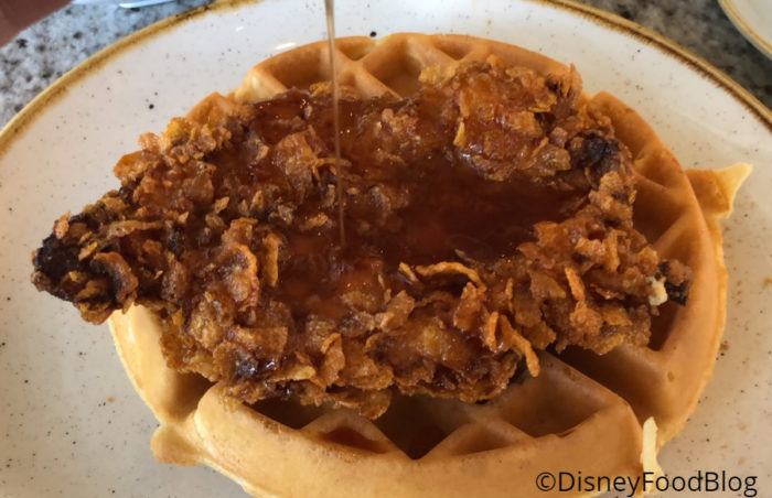 The most prominent Nashville Hot Chicken option in Disney World is at Grand Floridian Cafe. If you order the Chicken and Waffle (which you can also get with a Mickey waffle!) it will come with a Sriracha-honey drizzle! Guys. Just look at it.