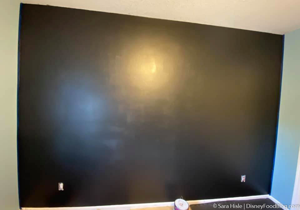 The wall that Sara painted is 7.5 x 10.5 feet for your reference, but the design is easy to expand! To start, paint your chosen wall black.