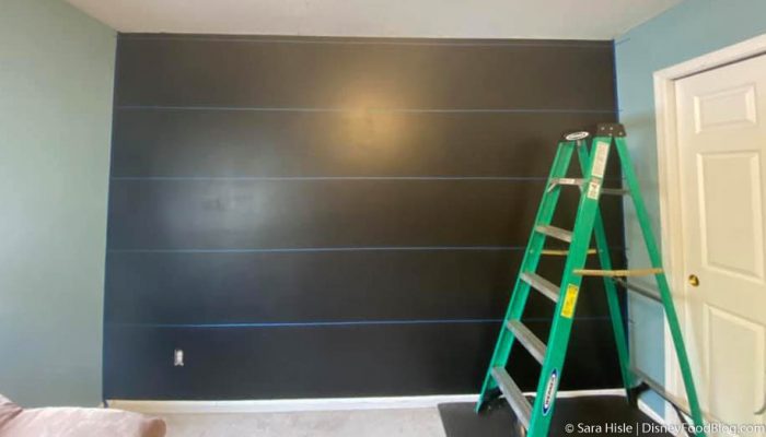 To make your very own Epcot wall, you’re going to need some paint. Sara used these greys from Behr.com in Elemental Gray, Dutch White, and Graphic Charcoal plus a plain Black! You can order these guys by the gallon online. This project took about half a gallon of each of the greys and 3/4 of a gallon of black paint.
