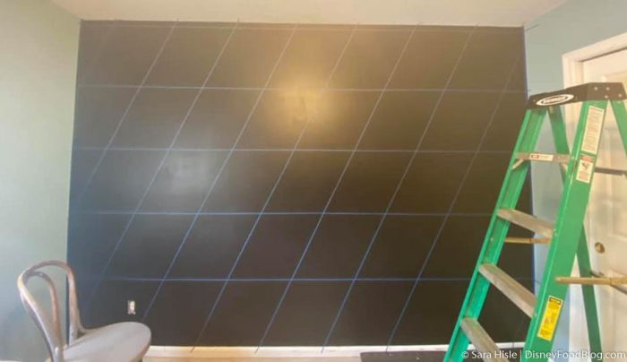 Then paint the WHOLE wall black again to seal all the tape! Remember to let the paint coats dry between each step.