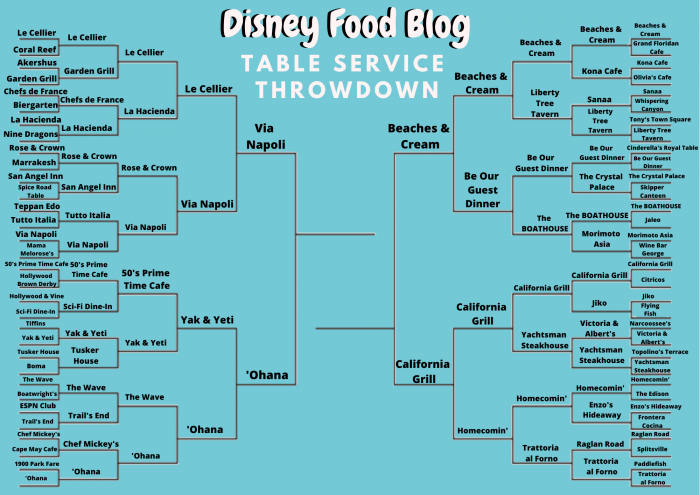 We gotta admit, we haven’t been sleeping as much lately because we were worried about so many of our favorite Disney World dining spots facing off against each other! So far, rounds one, two, and three have kept us up nervously gnawing our pillows!