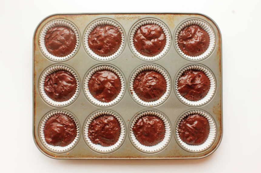 4. Mix together your chocolate cake batter and fill each cupcake liner 2/3 of the way full with the batter. Bake them for 14-16 minutes or until a toothpick comes out clean. Set them aside and let them cool completely.