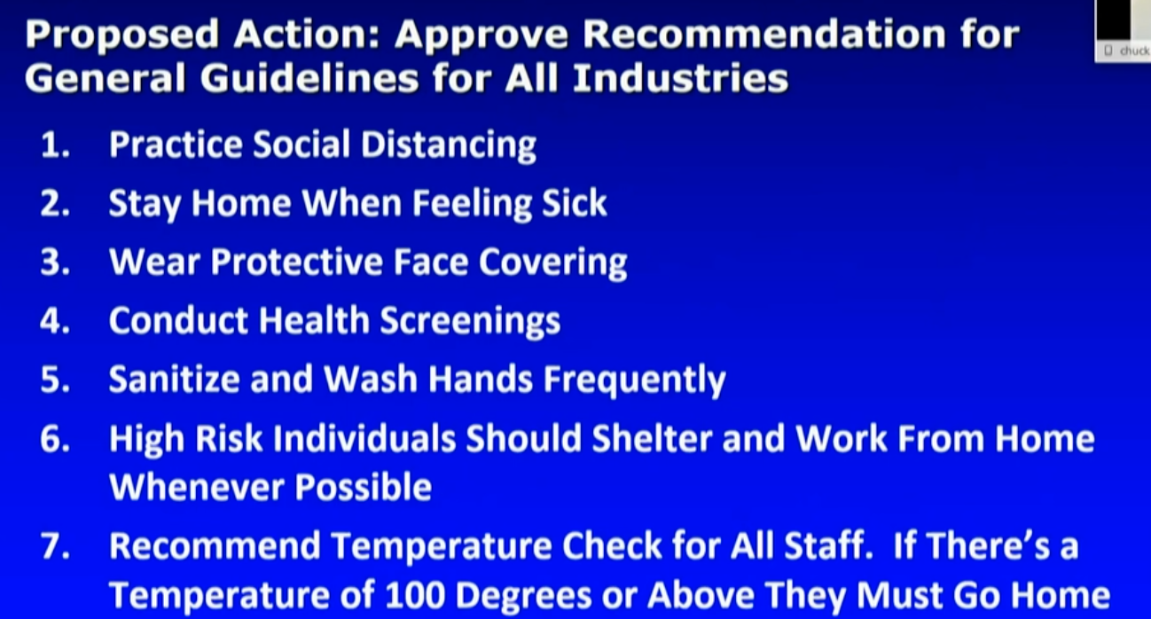 The Business Readiness Working Group is the subcommittee tasked with building the framework to vet, disseminate, and provide resources to employers. By May 4th, they will be giving the Mayor a new report with regards to COVID-19-specific employee safety protocols and operational templates along with other recommendations.