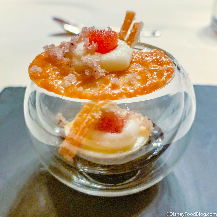 The first course — or “amuse-bouche” – is meant to warm up your palate for the meal ahead. During our visit, they served Imperial Caviar with Alaskan King Crab.
