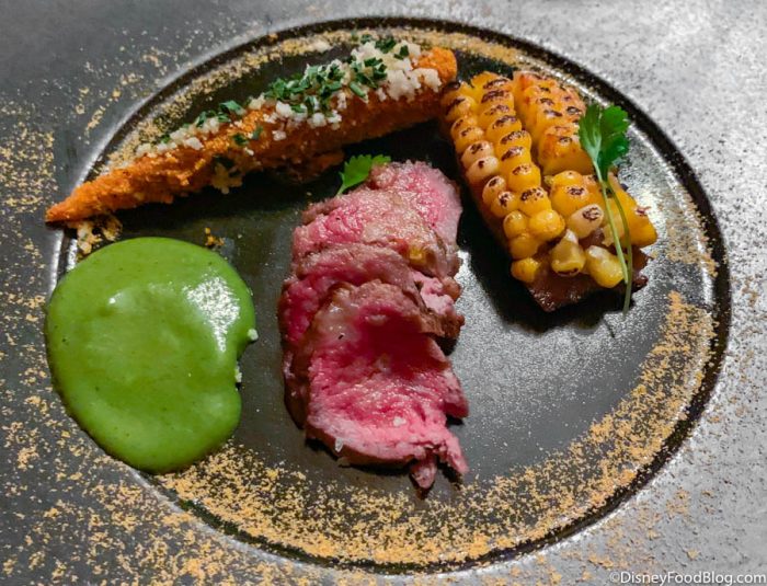 Bread break over, we were off to the next course. The fifth course was a Texas Wild Boar with Elote and ‘Salsa Verde.’