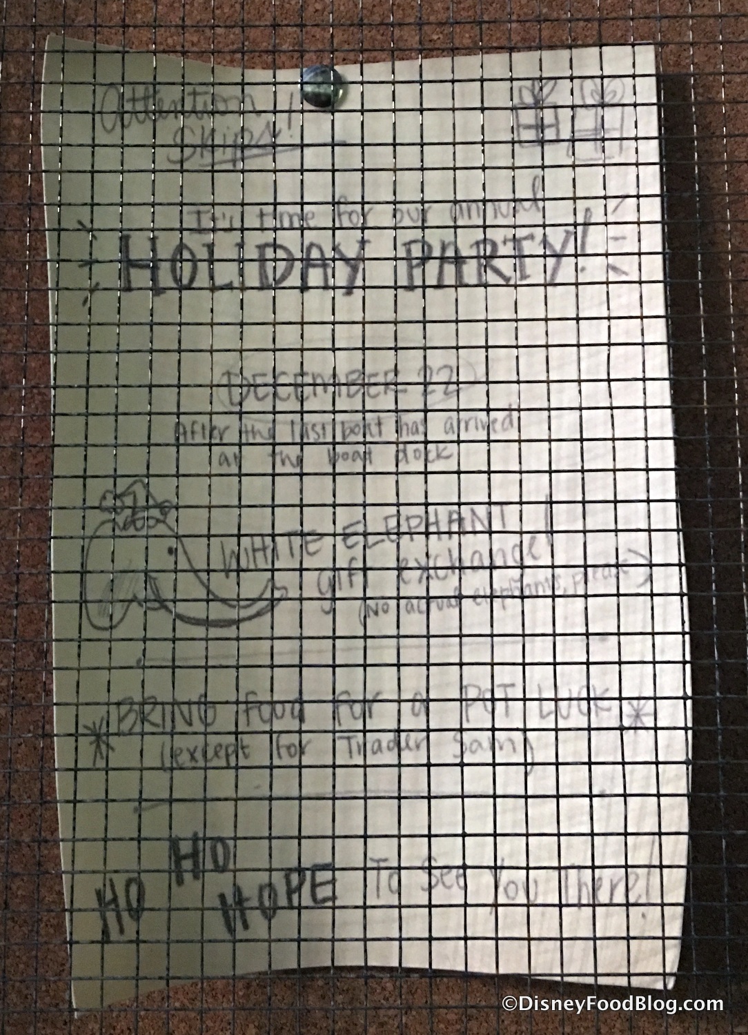 The Jungle Cruise references are everywhere in this restaurant! Another one of our favorites is the crew bulletin board. Take a glance at the funny notes and newspaper clippings from the Skippers!