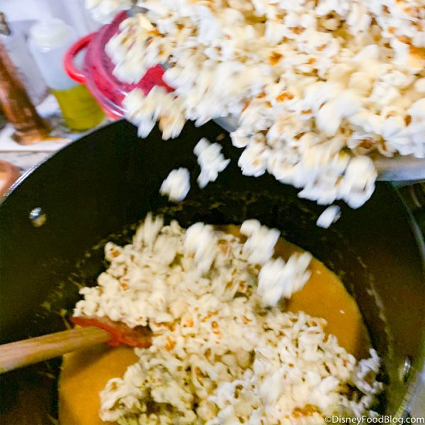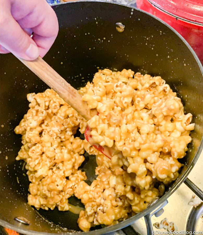 …and stir until it’s coated. You’ll want to work pretty quickly since the caramel will start setting up as it cools.