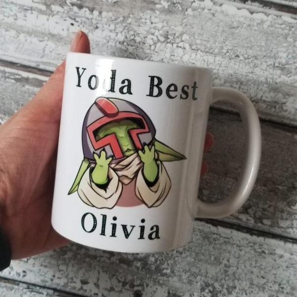 We fell in love with little Baby Yoda all over again when we laid eyes on this adorable series of mugs! And get this!!! They can be personalized to include your name!
