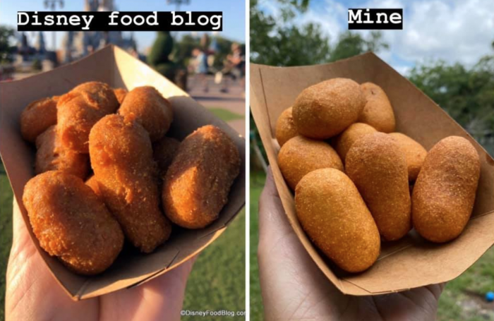 As soon as she finished whipping up our step-by-step recipes, she even snapped a pic like ours from the parks to get a true side-by-side comparison! You can spot the finished product of her classic Corn Dog Nuggets…